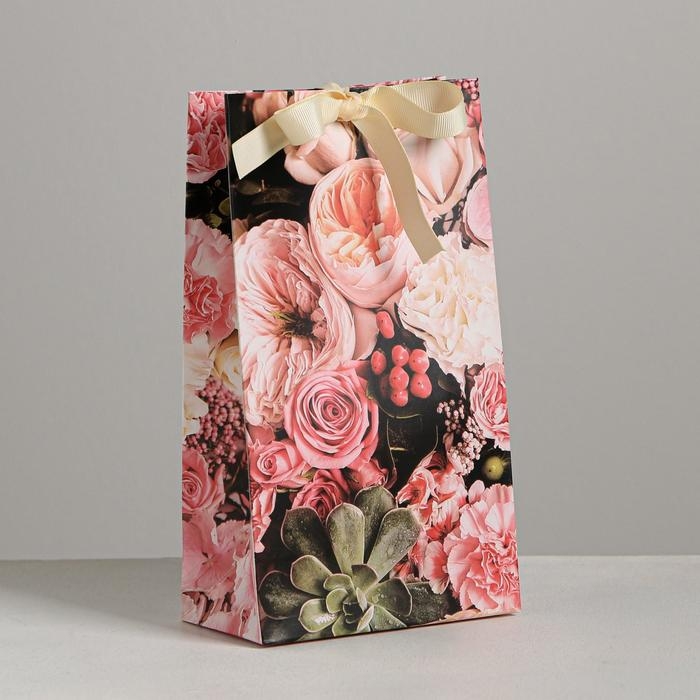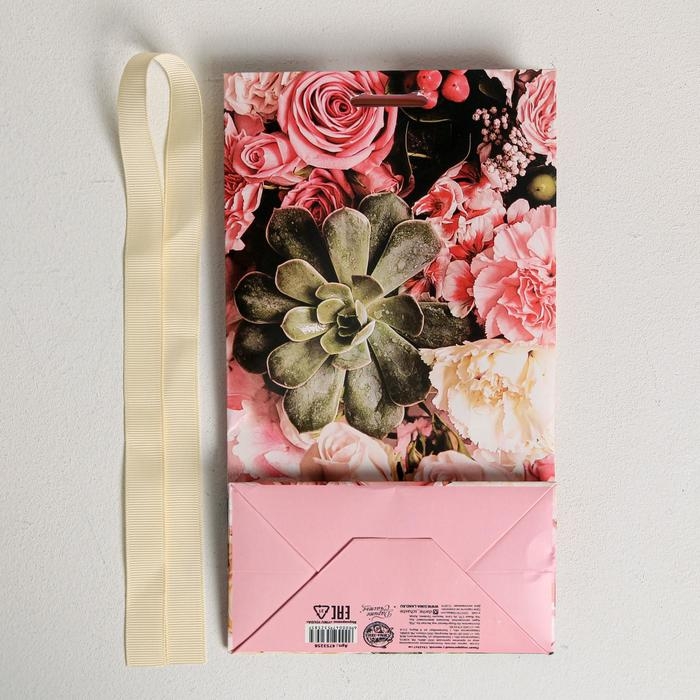 Пакет подарочный с лентой, упаковка, «Для тебя», 13 х 23 х 7 см