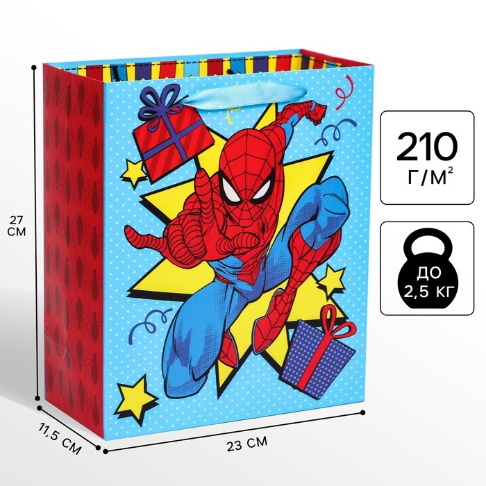 Пакет подарочный "С Днем рождения" 23х27х11.5 см, упаковка, Человек-паук