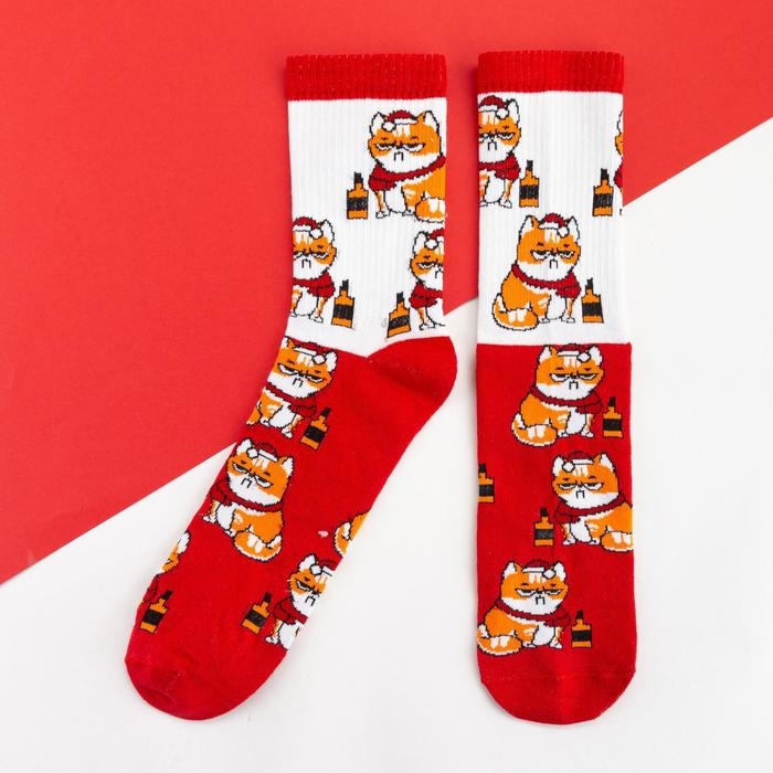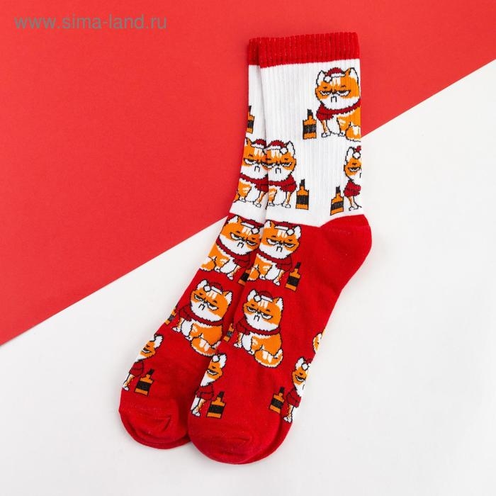 Носки новогодние мужские KAFTAN "Кот" размер 41-44 (27-29 см), цвет красный
