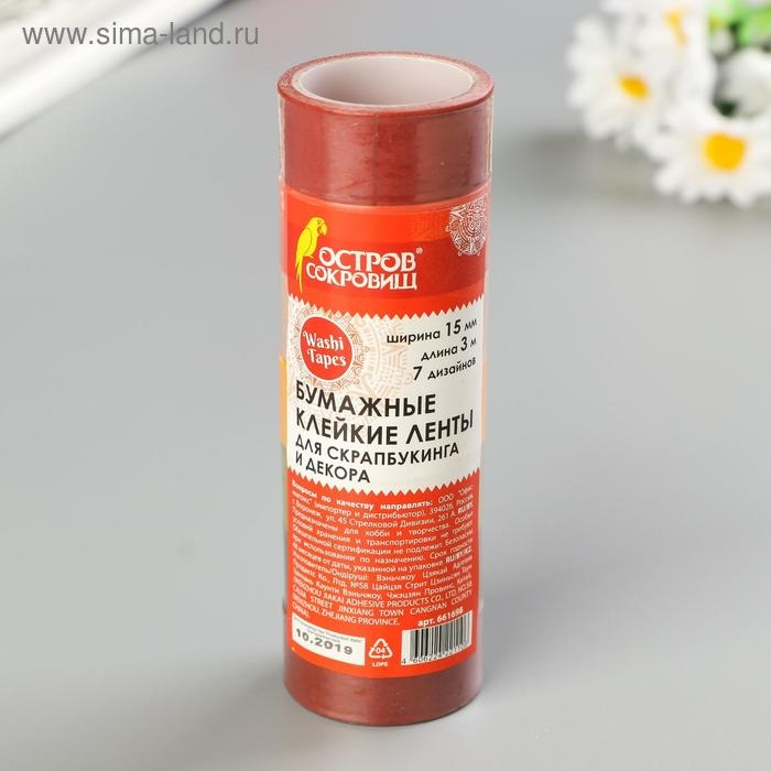 Клейкие WASHI-ленты д/декора "ИНТЕНСИВ", 7 тёпл цветов,15 мм х 3 м (набор 7шт)рисовая бумага