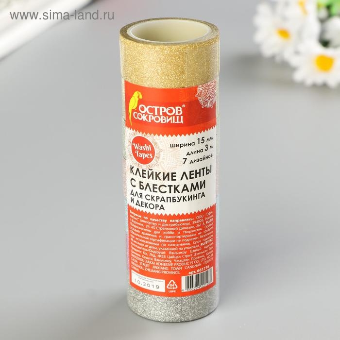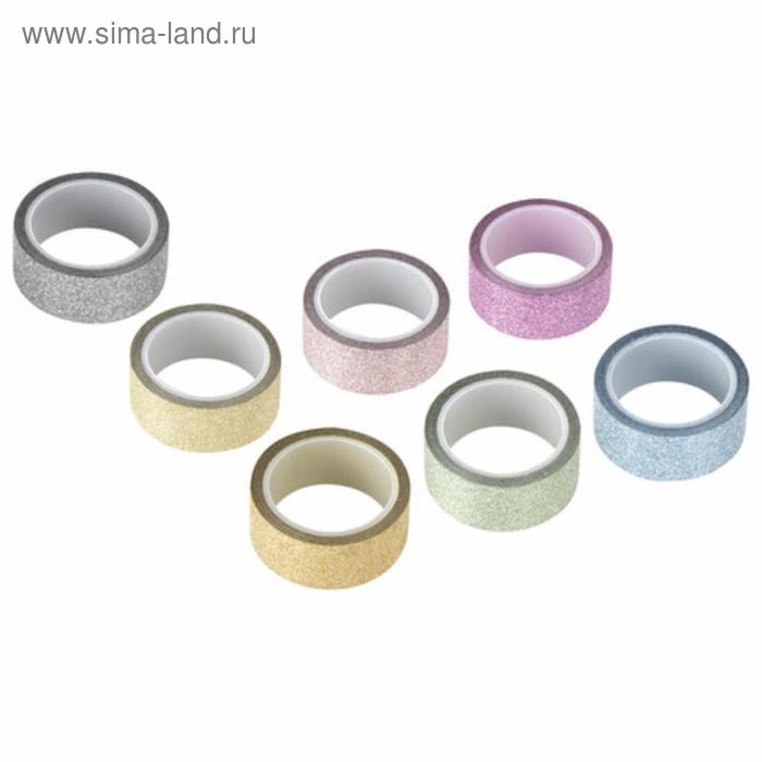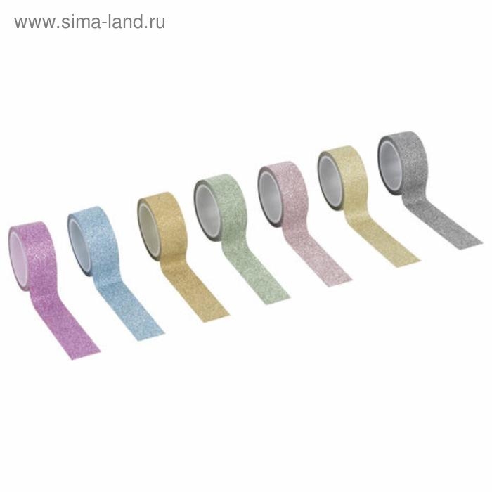 Клейкие ленты полимерные для декора с блестками "ПАСТЕЛЬ", 15 мм х 3 м (набор 7 шт)