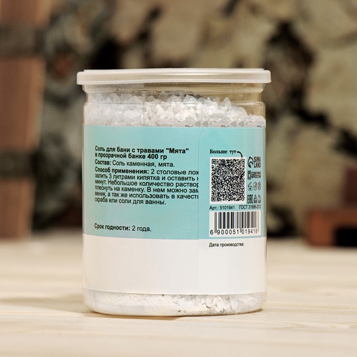 Соль для бани с травами "Мята" в прозрачной банке, 400 гр