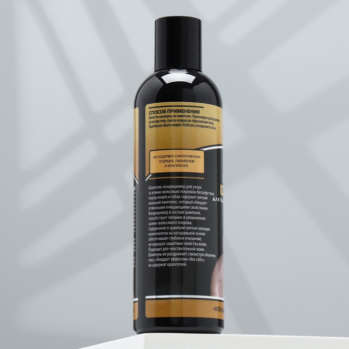 Шампунь-кондиционер для ухода за шерстью всех пород кошек и собак содержит мягкий моющий комплекс который обладает отличными очищающими свойствами.