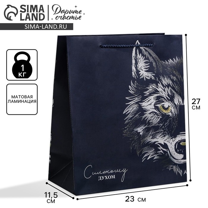 Пакет подарочный ламинированный вертикальный, упаковка, «Сильному духом», ML 23 х 27 х 11,5 см
