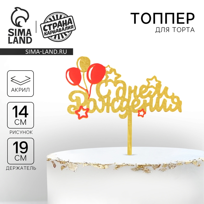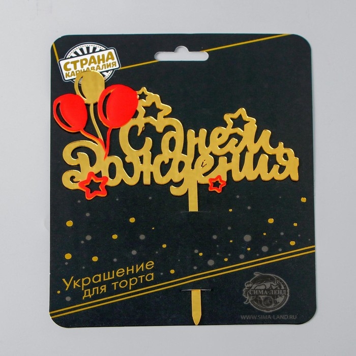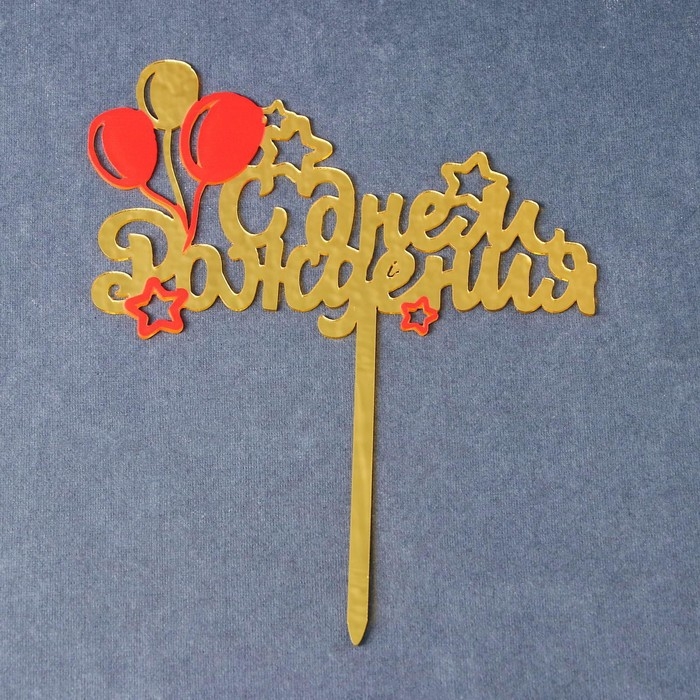 Топпер для торта «С Днём Рождения», 15×13,5 см, цвет золотой