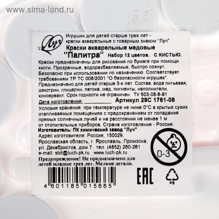 Акварель "Луч" Палитра, 12 цветов, с кистью