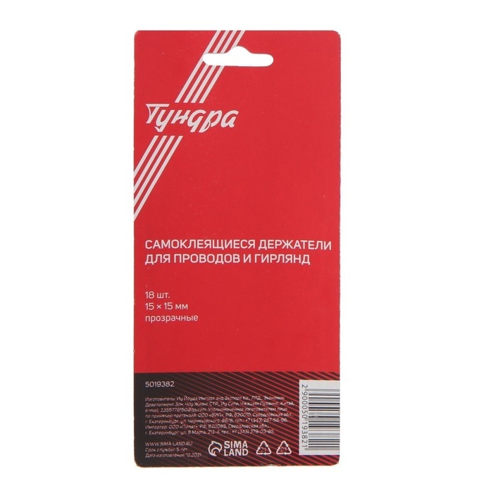 Держатель самоклеящийся для проводов и гирлянд ТУНДРА применяется для легкого, надежного и безопасного крепления разнообразных аксессуаров на вертикальной и горизонтальной поверхностях.