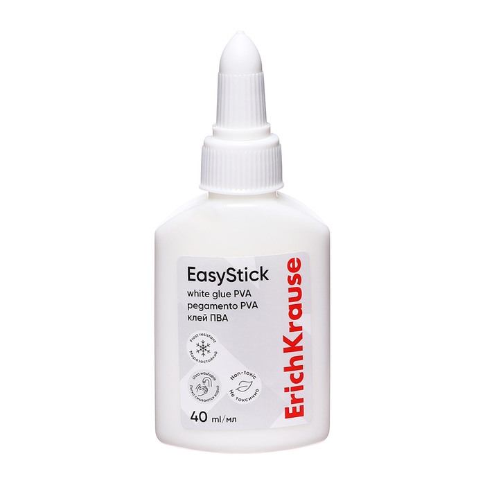 Клей ПВА во флаконе с выкручивающимся самоочищающимся аппликатором.