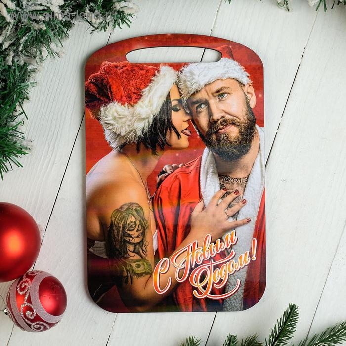 Доска разделочная "Новогодняя. С Новым годом! Встречай страстно!", цветная, 27х18 см