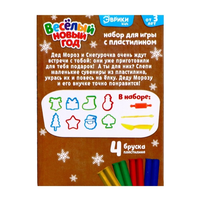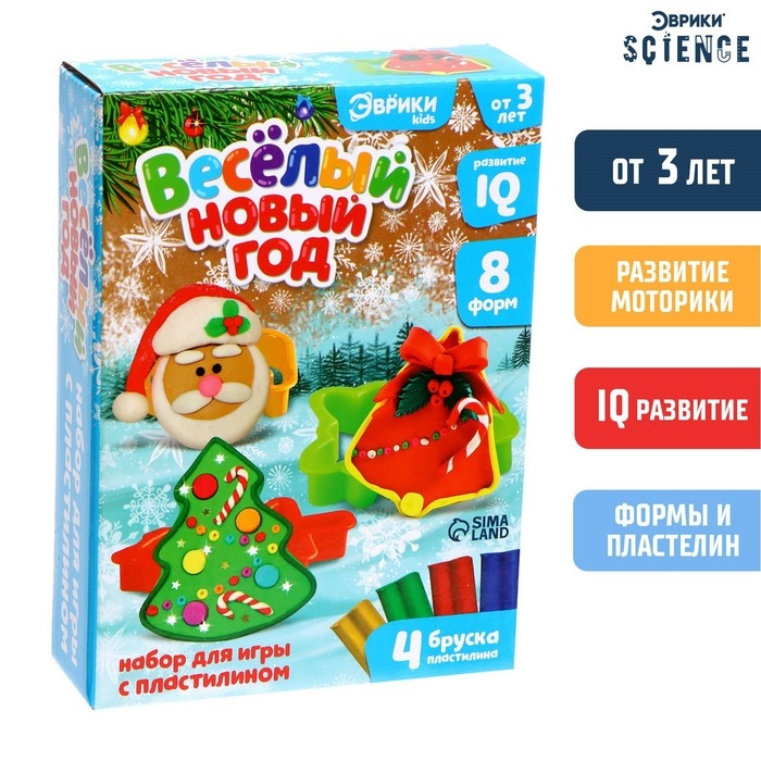 Набор для игры с пластилином «Весёлый Новый год», 8 форм, 4 бруска пластилина