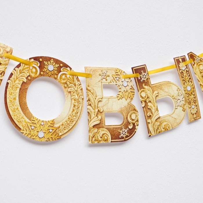 Гирлянда на ленте новогодняя «С Новым годом!», на Новый год, золотая, длина 1.3 м.