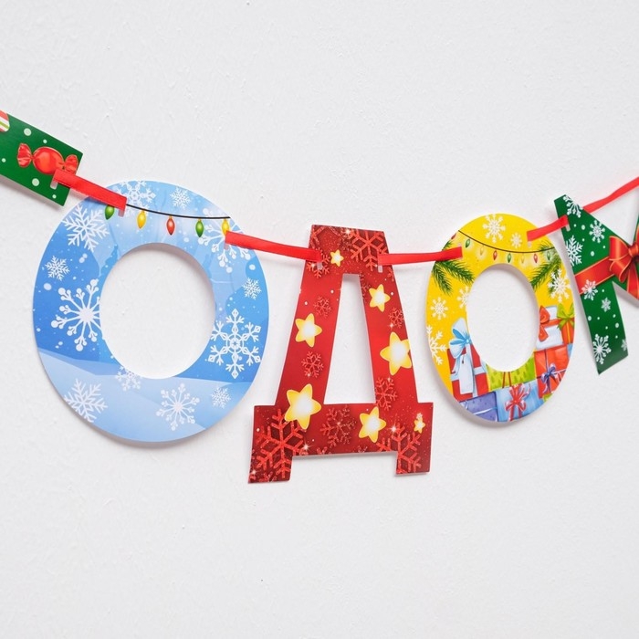Гирлянда на ленте новогодняя «С Новым годом!», на Новый год, радужная, длина 1.3 м.
