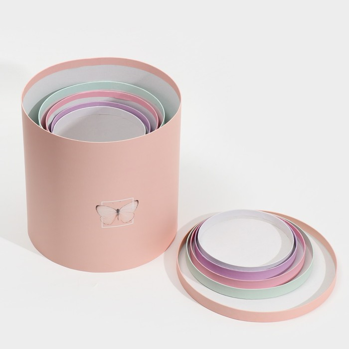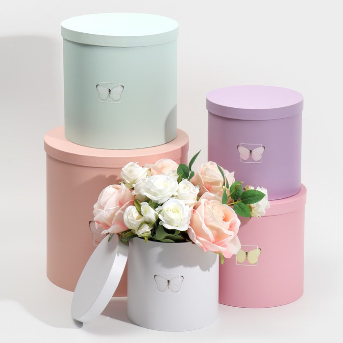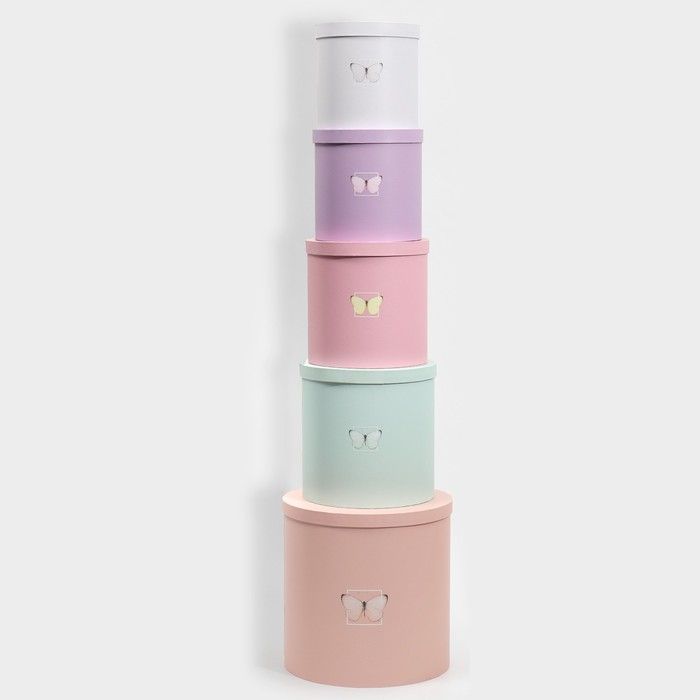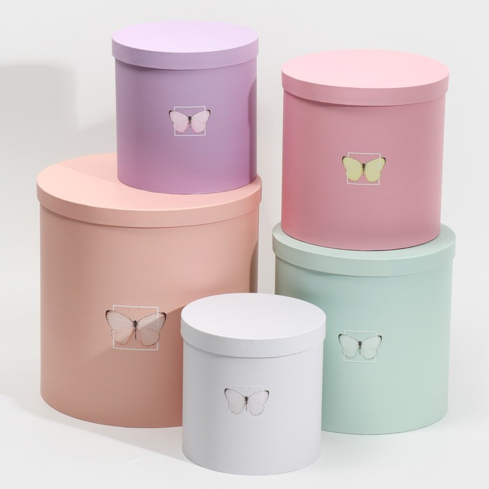 Набор круглых коробок 5 в 1, упаковка подарочная, «Бабочки», 23 х 23 х 25 ‒ 15 х 15 х 15 см