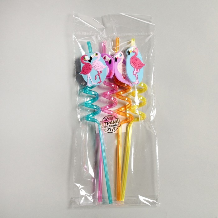 Трубочка из пластика «Фламинго», набор 4 шт., МИКС