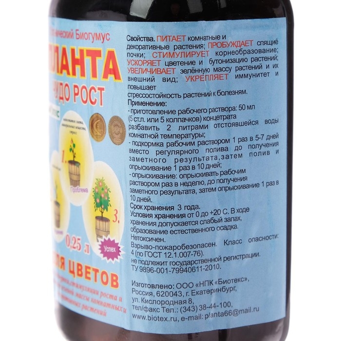 Планта "БиоТекс" "Чудо-Рост" для цветов, универсальный, 250 мл