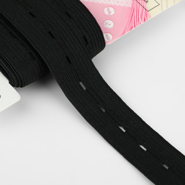 Резинка вязаная, перфорированная, 20 мм, 2,4 ± 0,5 м, цвет чёрный