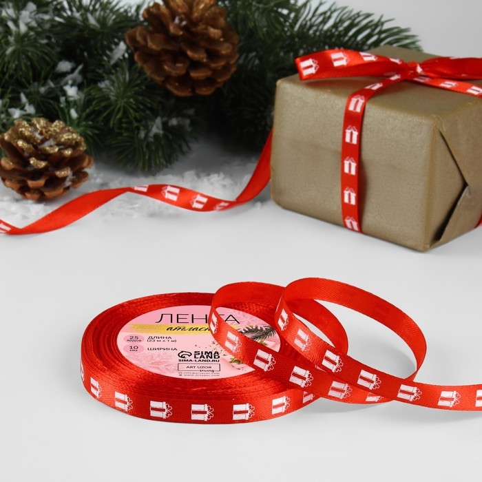 Новый год! Лента атласная «Подарки», 10 мм, 23 ± 1 м, цвет красный №26