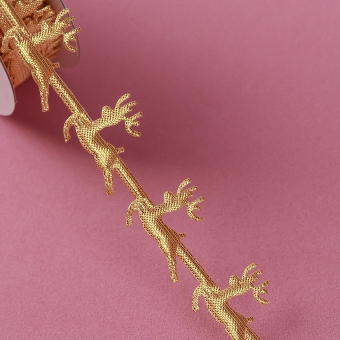 Новый год! Лента декоративная фигурная «Олени», 20 мм, 9 ± 0,5 м, цвет золотой