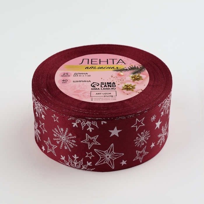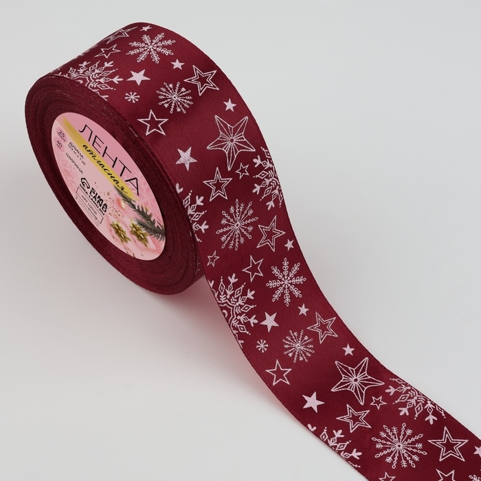 Новый год! Лента атласная «Снежинки», 40 мм, 23 ± 1 м, цвет красный/белый №33