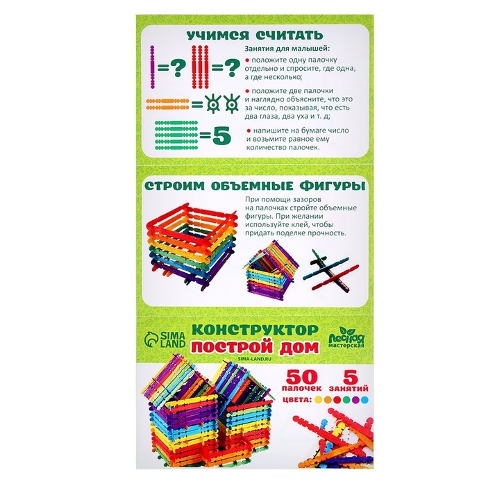 Конструктор из цветных палочек «Построй дом» — это неограниченный простор для творчества и обучения. Приятный на ощупь, теплый материал доставляет тактильное удовольствие в процессе игры и тренирует мелкую моторику и пространственное мышление. Играя и конструируя, малыш запомнит основные цвета и освоит навыки счёта.