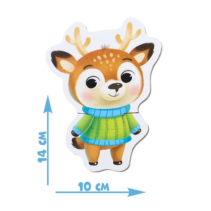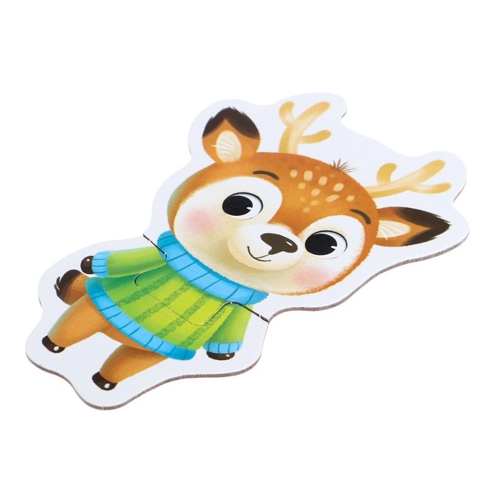 Макси-пазлы «Весёлый Новый год!» — это 10 деталей, из которых ребёнок соберёт 5 разных героев. Малыш познакомится с забавными животными и сказочным персонажем.