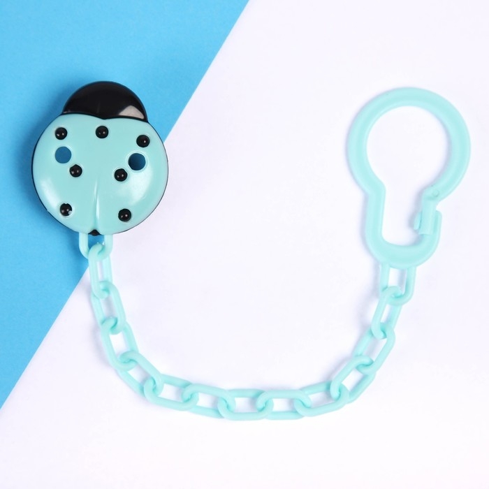 Держатель для соски - пустышки «Божья коровка», на цепочке, цвет бирюзовый