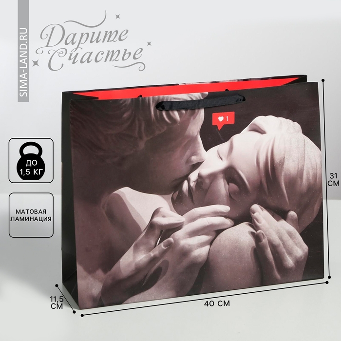 Пакет подарочный ламинированный горизонтальный, упаковка, «Love», L 40 х 31 х 11,5 см