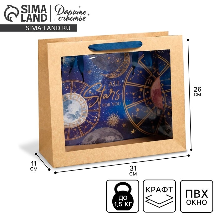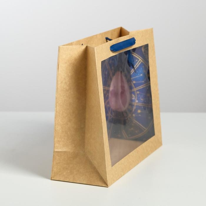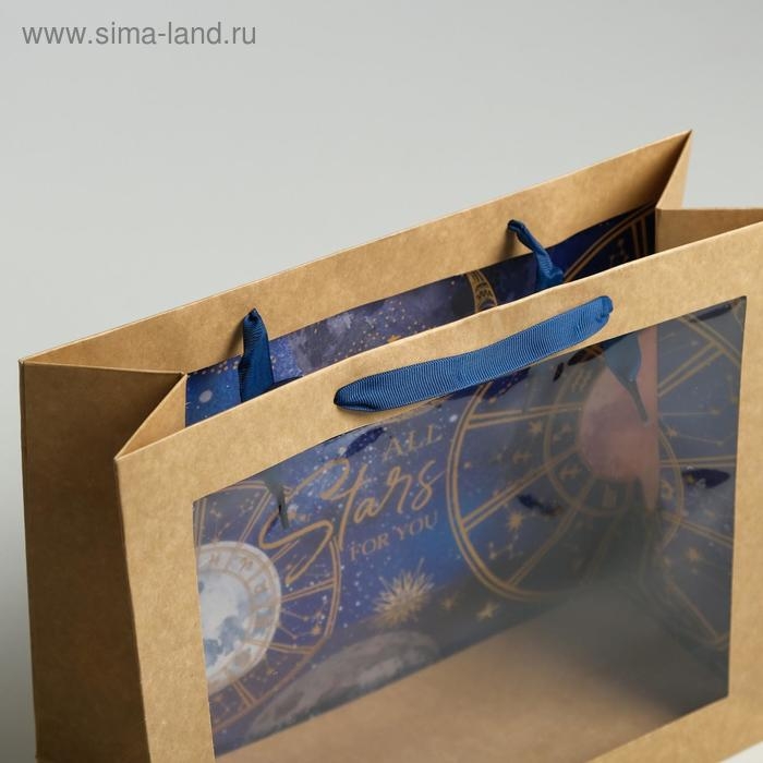 Пакет подарочный крафтовый с пластиковым окном, упаковка, «Космос: Stars», 31 х 26 х 11 см