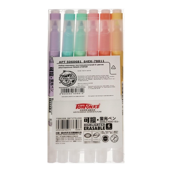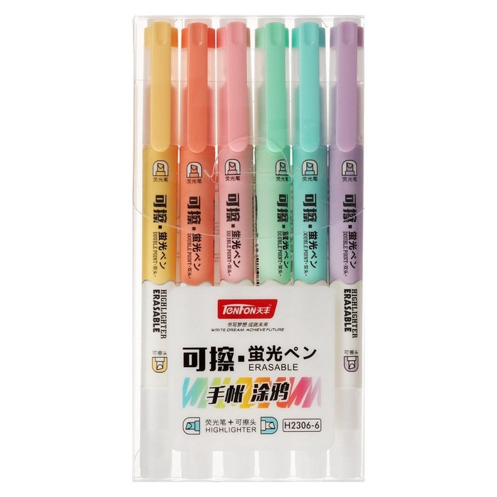 Набор маркеров-текстовыделителей "Пиши - стирай" 6 цветов, двусторонние