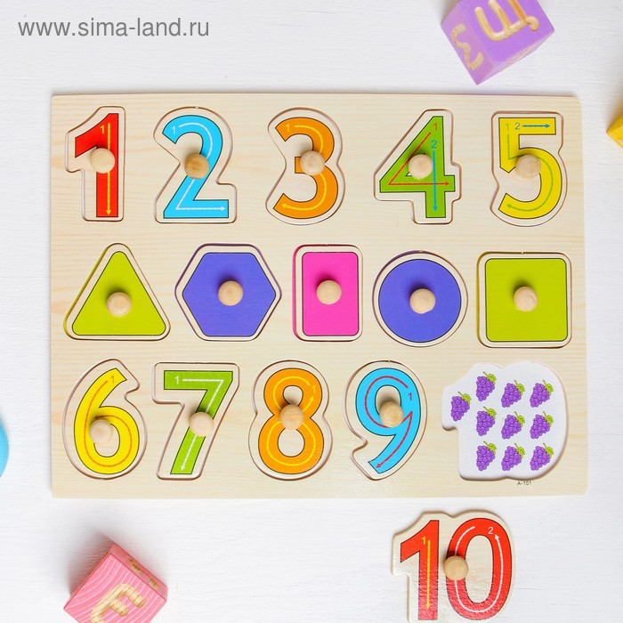 Удобная ручка позволит легко вынуть элемент из рамки и вставить его в подходящее отверстие. Благодаря необходимости браться за неё тремя пальчиками у малыша будет развиваться щипковый захват, который пригодится ему в будущем в освоении рисования, лепки и письма.