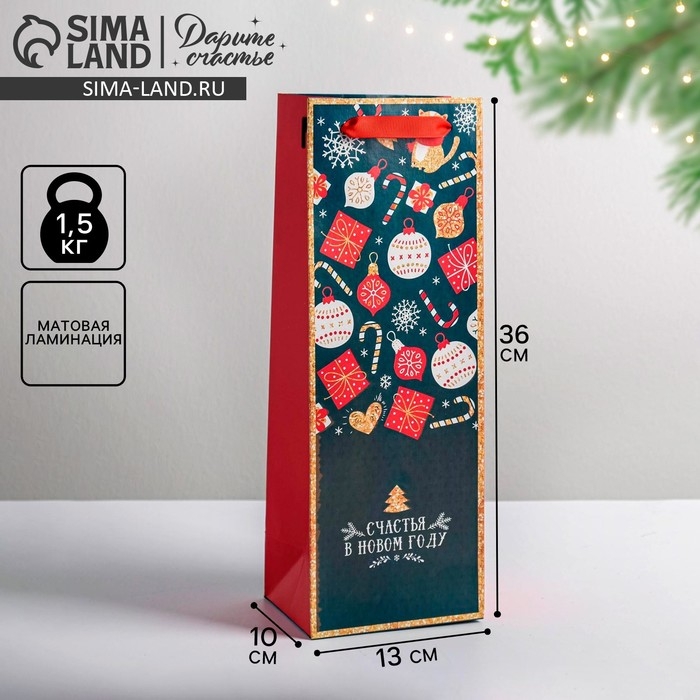 Пакет под бутылку «Счастья в Новом году», 13 х 36 х 10 см , Новый год