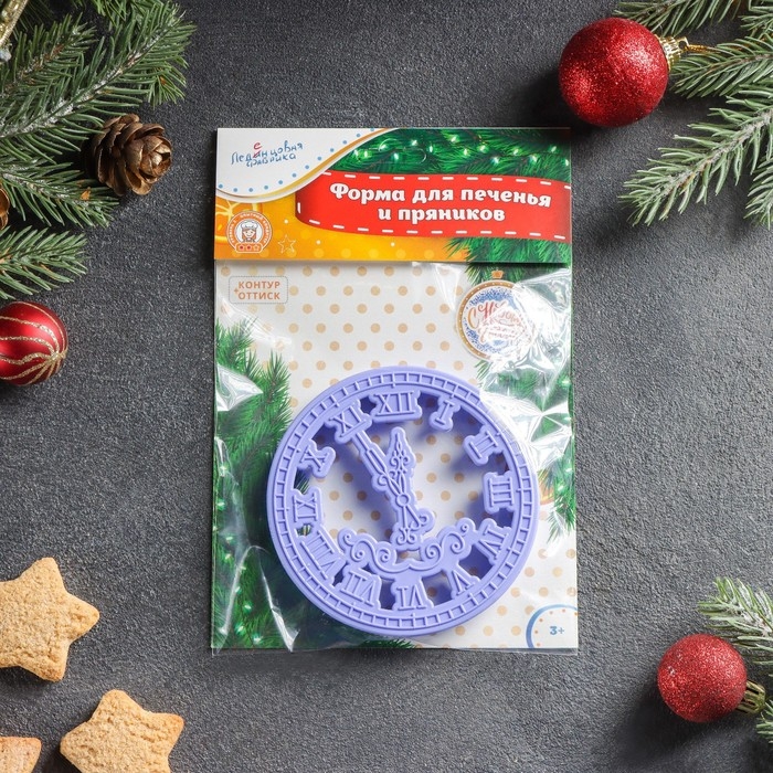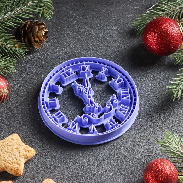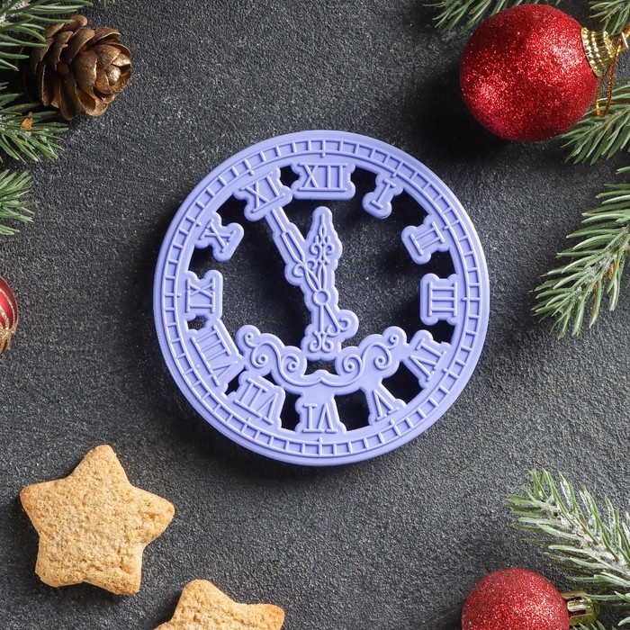 Форма для печенья «Куранты», вырубка, штамп, 9.5×9.5 см, цвет сиреневый