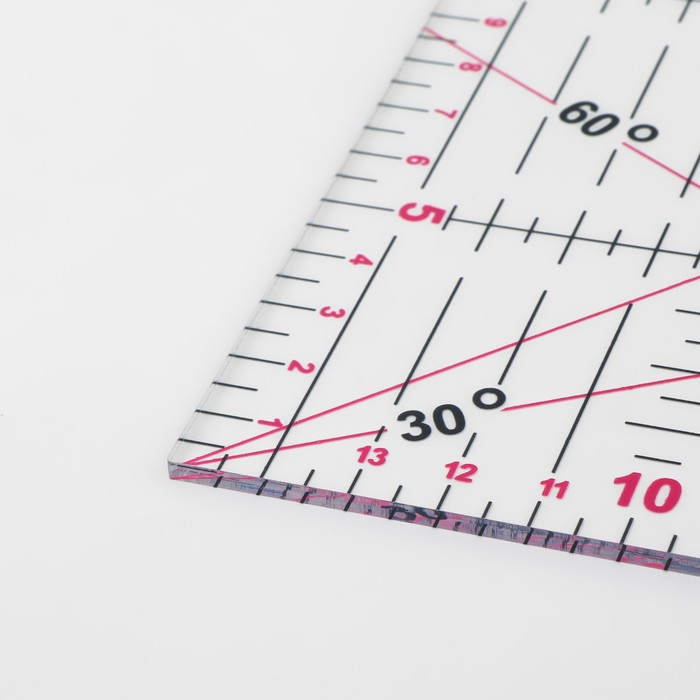 Линейка для квилтинга и пэчворка, 30 × 30 см, толщина 3 мм, цвет прозрачный/розовый