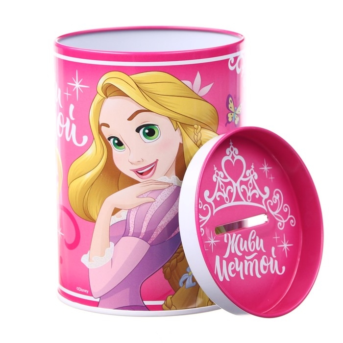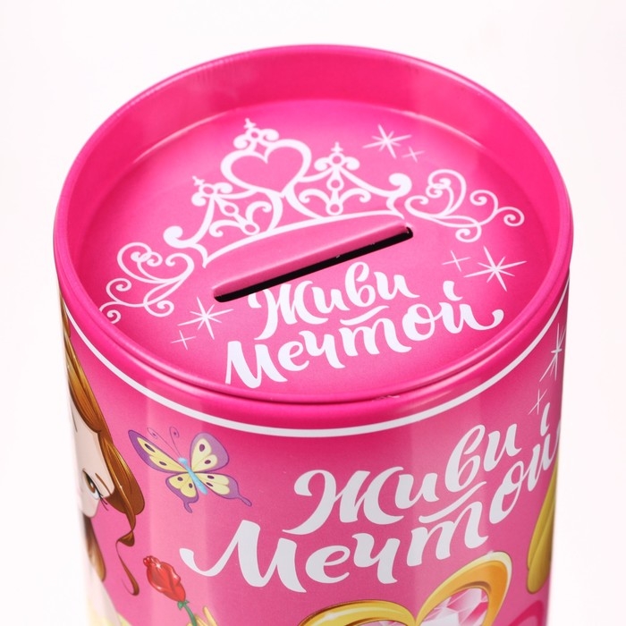 Копилка металлическая, 7,5 см х 7,5 см х 10,3 см "Живи мечтой", Принцессы