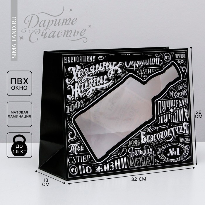Пакет подарочный ламинированный с пластиковым окном, упаковка, «Крутой мужик» , 32,5 х 26,5 х 13,5 см