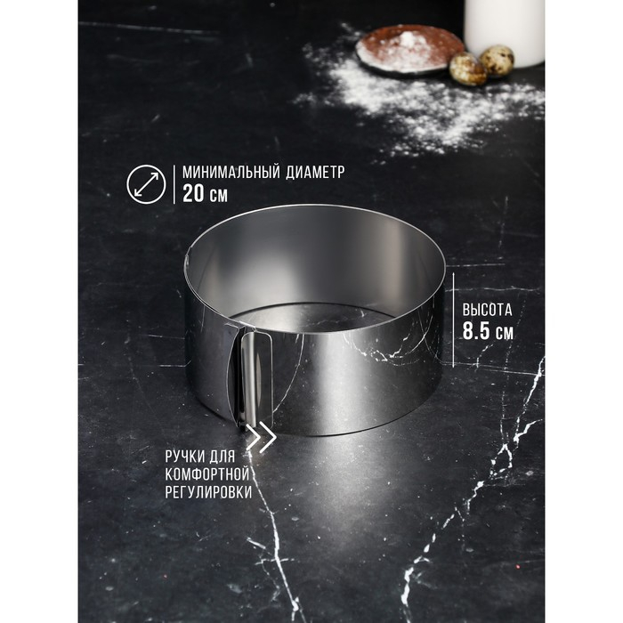 Форма для выпечки и выкладки с регулировкой размера «Круг», h-8,5 см, d-20-38 см