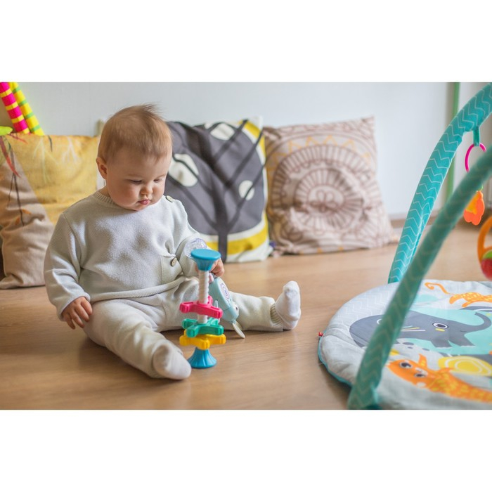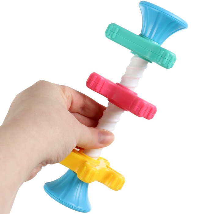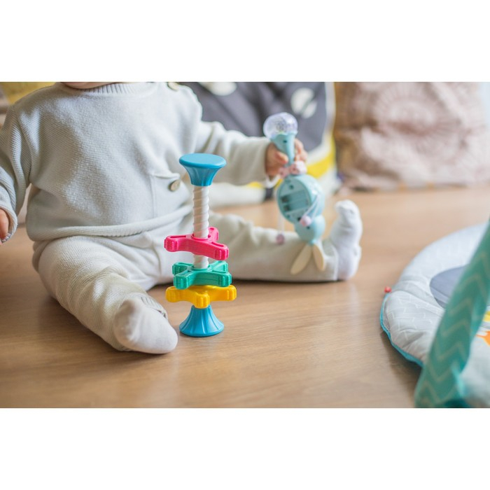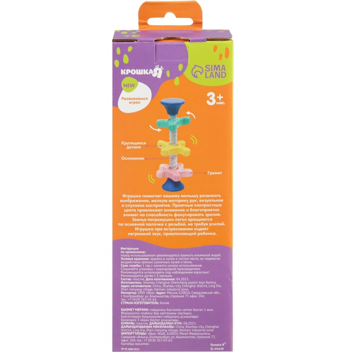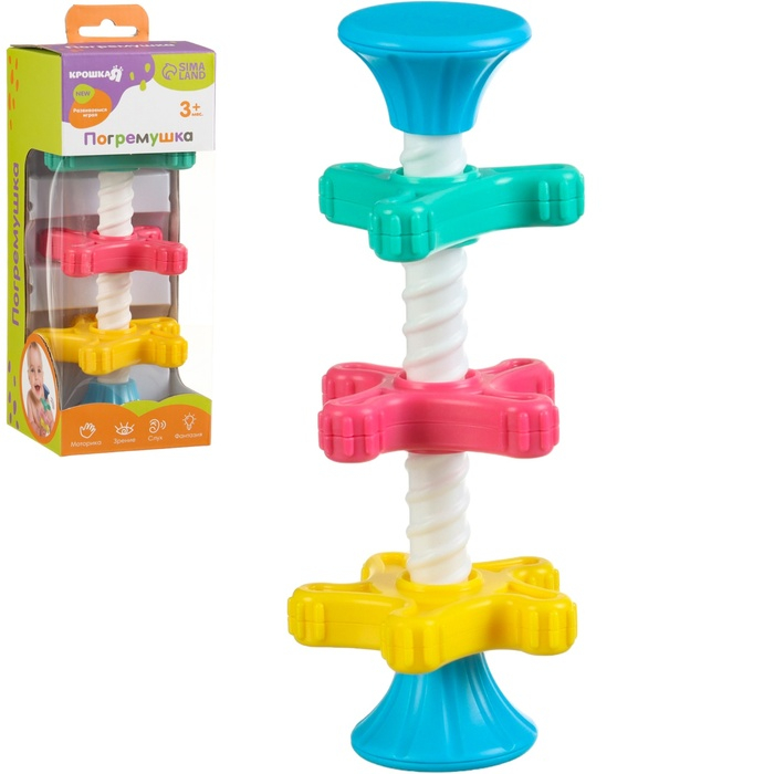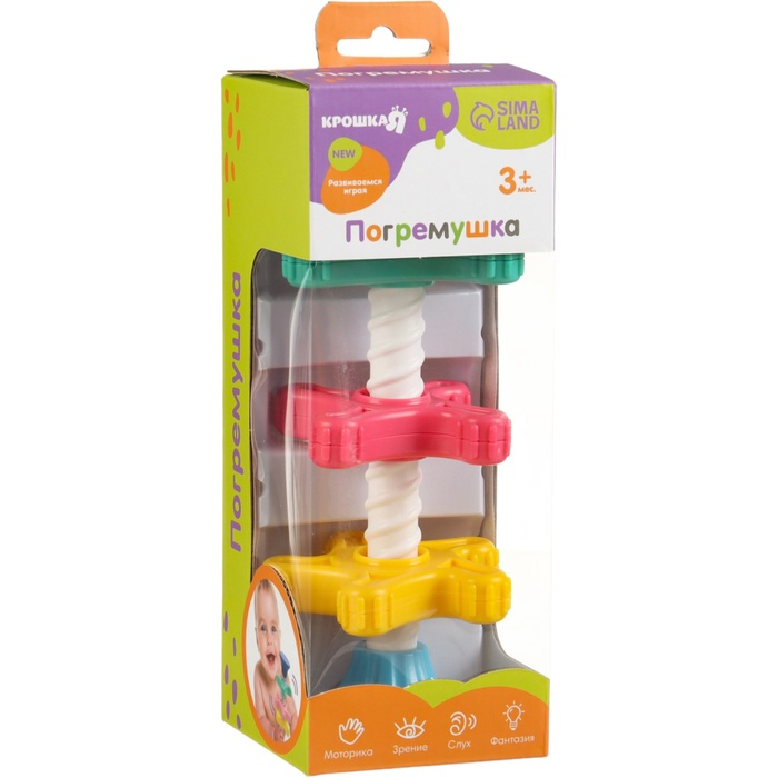 Игра направлена на развитие воображения, внимания, памяти, интеллектуальных способностеи,а также мелкой моторики рук вашего ребенка.Благодаря занятиям в игровойформе ваш малышрслегкостью научится называть и сопоставлять цвета‚различать геометрически формы. Звенья погремушки легко вращаются по основной палочке с резьбой и не требуют усилий. В торцевых заглушках находятся шарики, которые издают приятный звон.