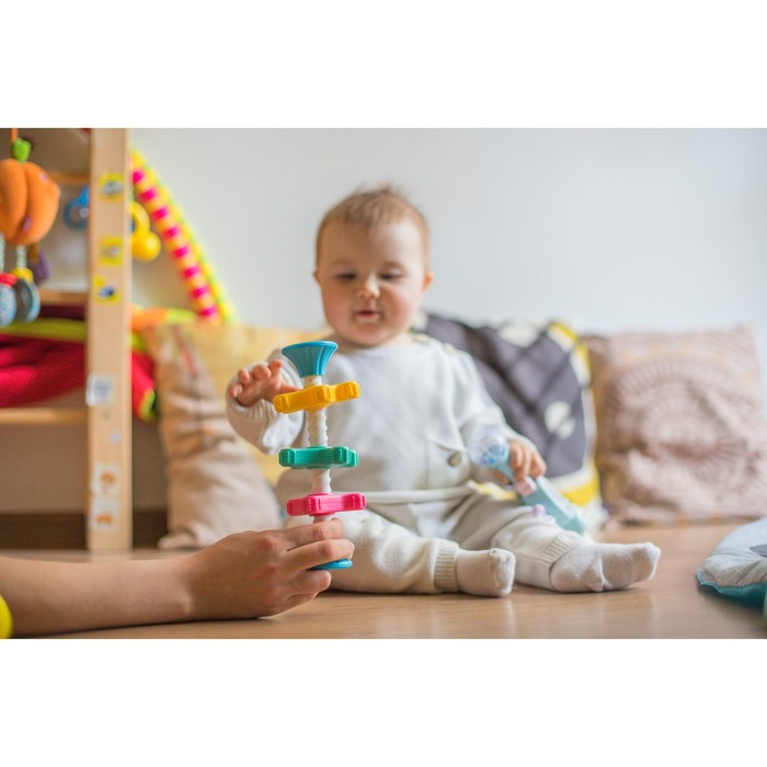 Развивающая игрушка пирамидка «Закрути меня» с шестеренками, погремушка, Крошка Я