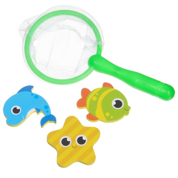 Набор для игры в ванне «Рыбалка: Веселые рыбки», сачок, 3 мягких стикера, виды и цвет МИКС