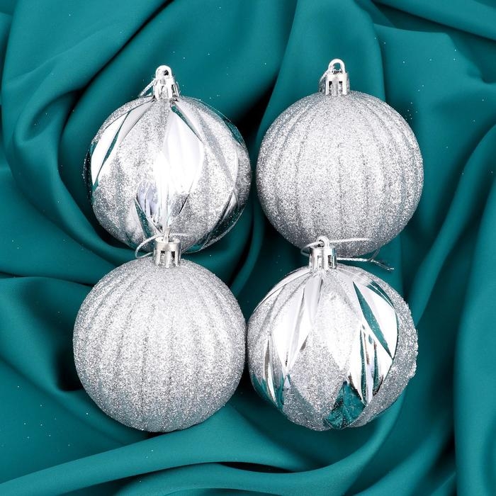 Набор шаров пластик d-7 см, 4 шт "Сияние грани" серебро