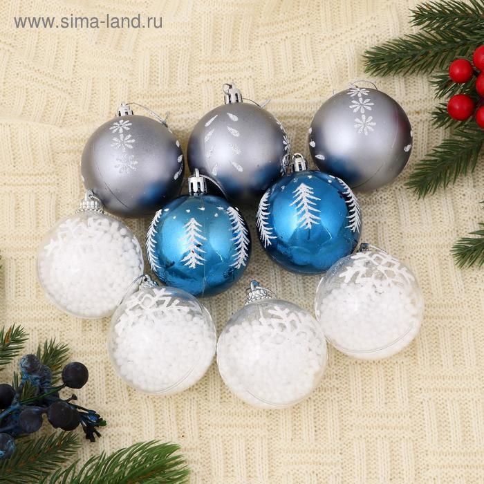 Набор шаров пластик d-6 см, 9 шт "Снежный"