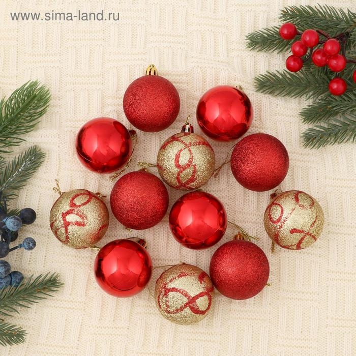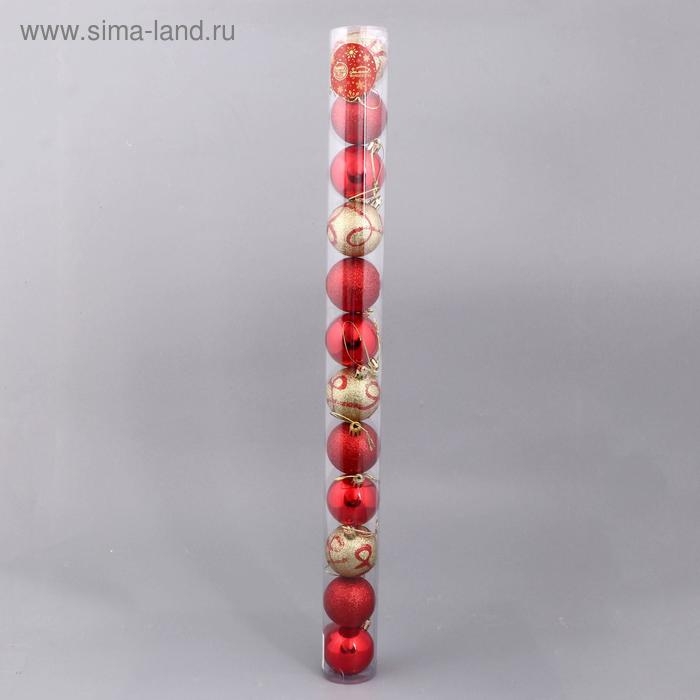 Набор шаров пластик d-5 см, 12 шт "Крона" красно-золотой