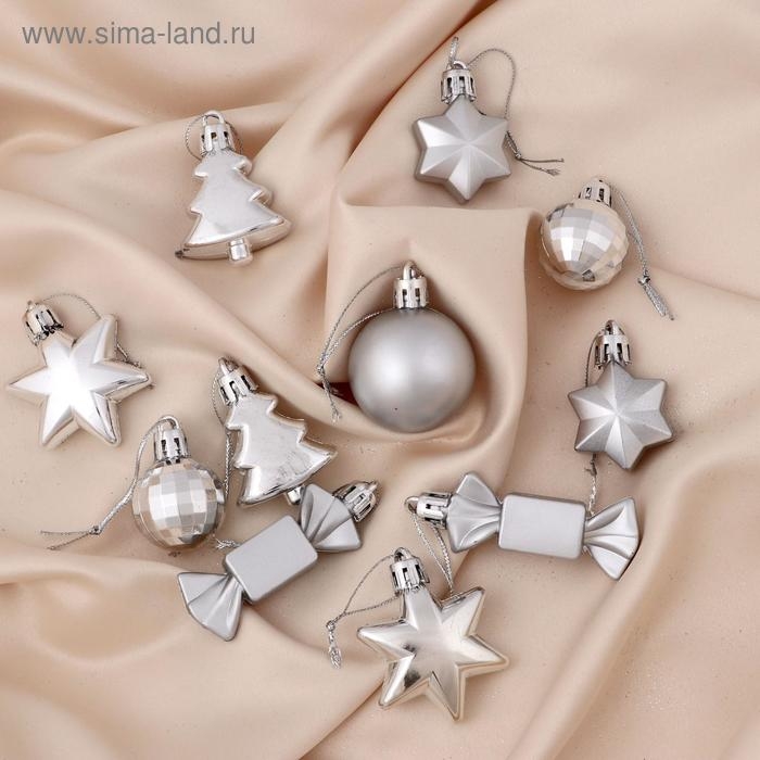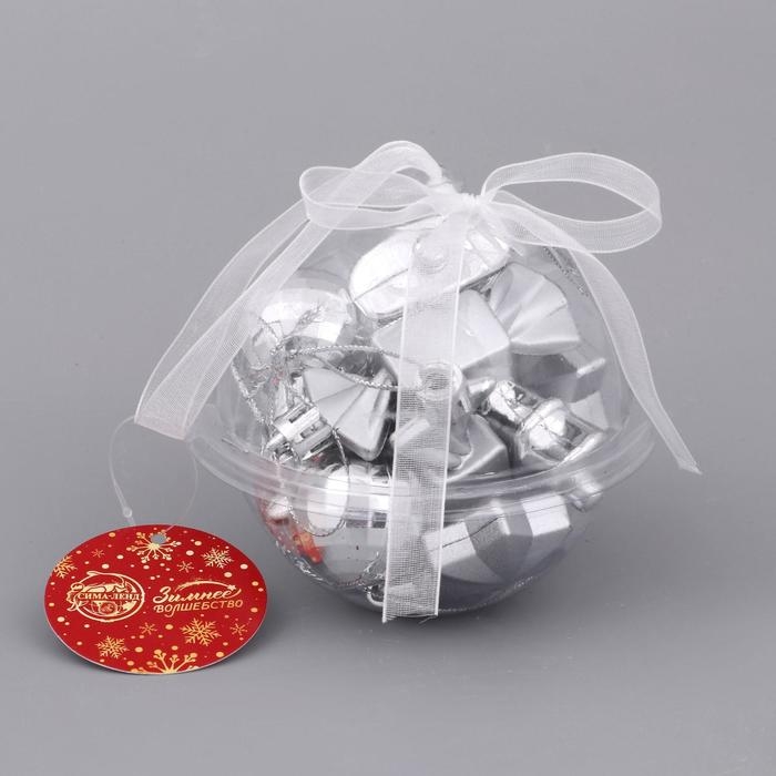 Набор украшений пластик d-3,5 см, 10 шт "Санда" серебро