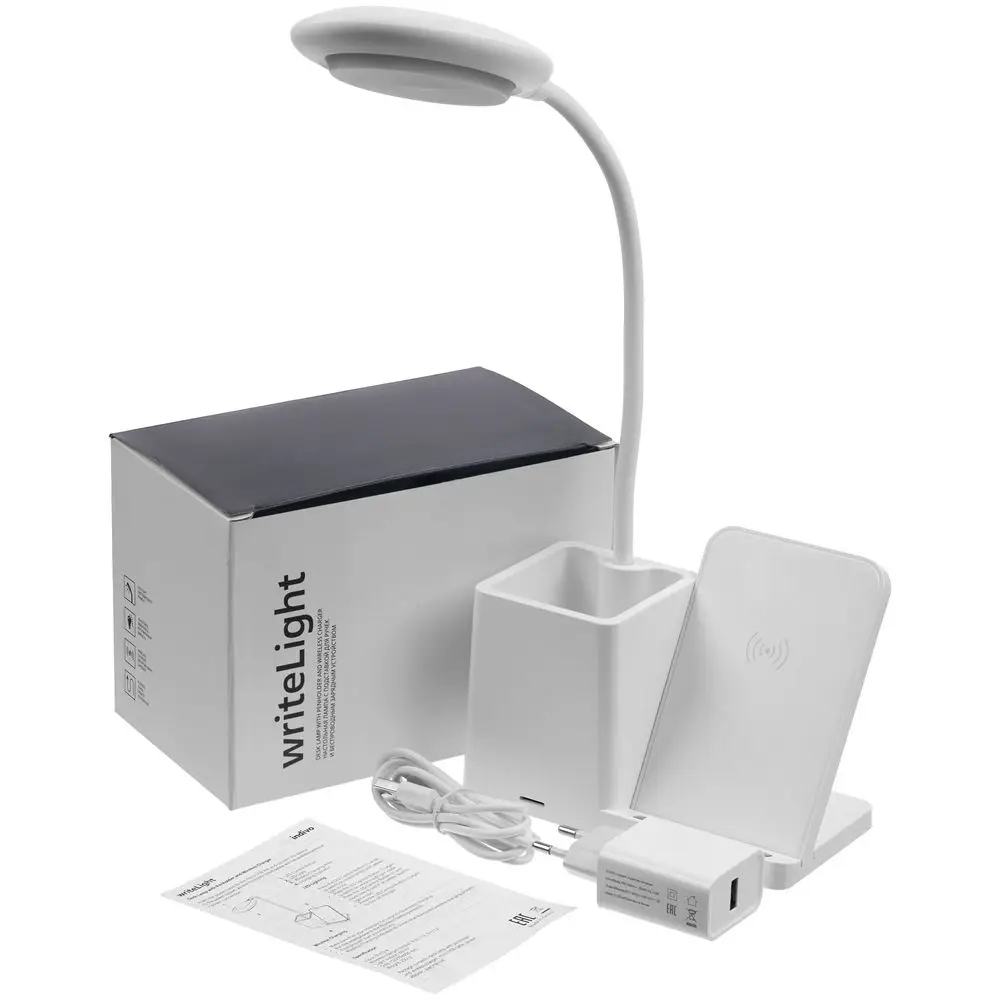 Лампа с органайзером и беспроводной зарядкой writeLight, ver. 2, белая