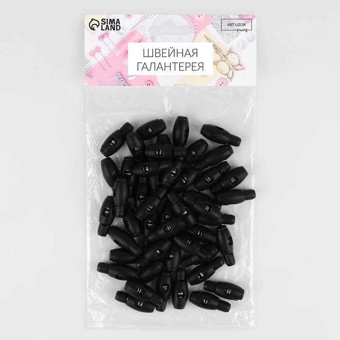 Набор фиксаторов для шнура, d = 6 мм, 30 × 10 мм, 50 шт, цвет чёрный