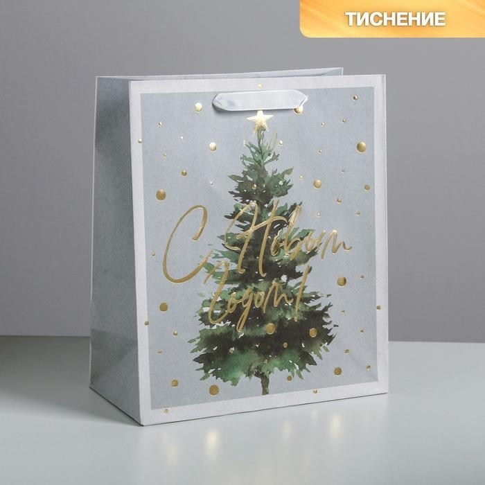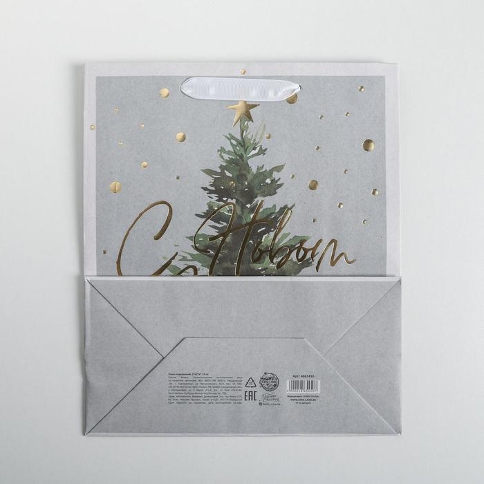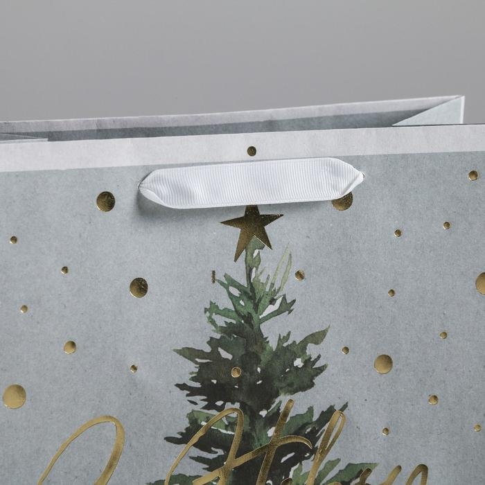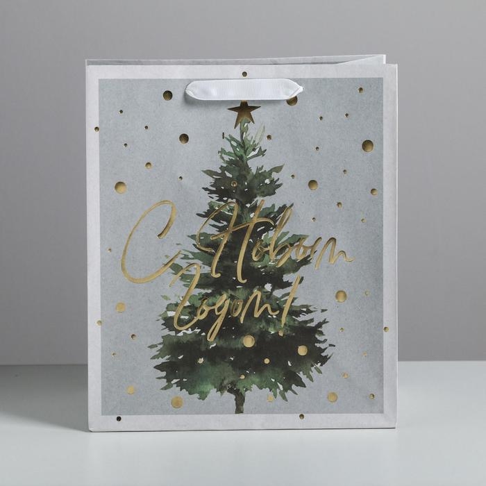 Пакет подарочный новогодний крафтовый вертикальный «Сказочная ёлочка», ML 23 х 27 х 11.5 см, Новый год