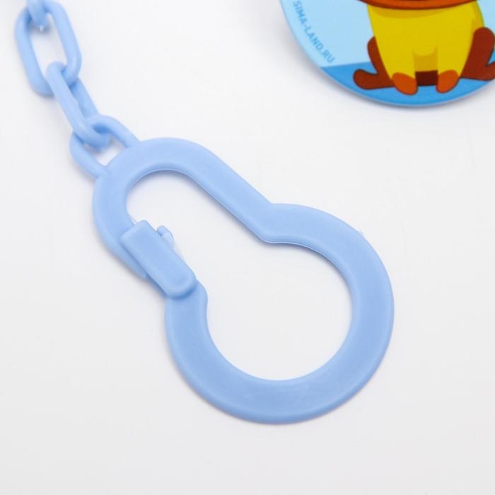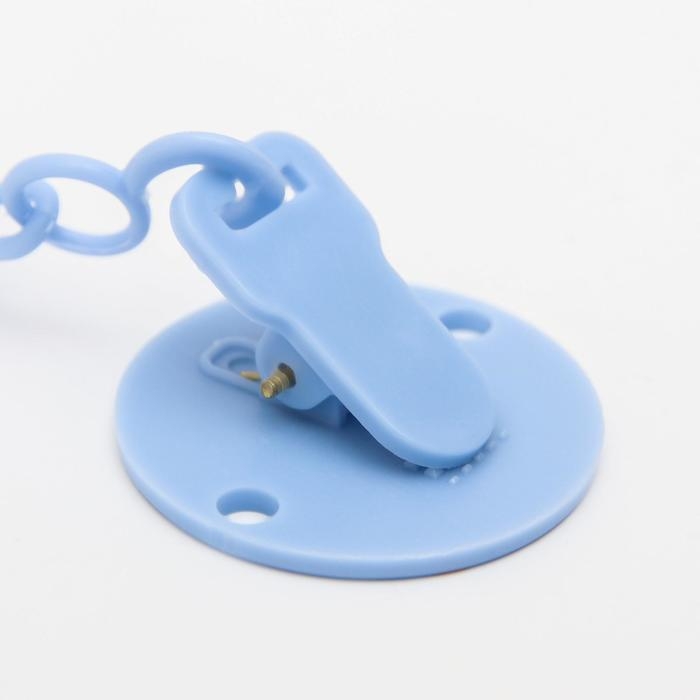 Изделие фиксируется на одежде ребёнка. На конце цепочки есть карабин, который зацепляется за кольцо пустышки. Надёжное крепление убережёт вещь от падения на пол, если малютка случайно выронит её изо рта.