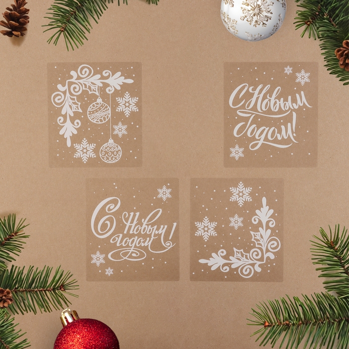 Набор наклеек новогодних "С Новым Годом!" 28,6 х 30 см