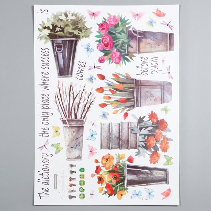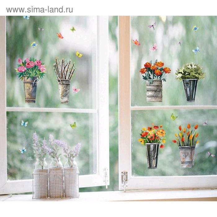 Наклейка пластик интерьерная "Цветы в ведёрках" 50х70 см