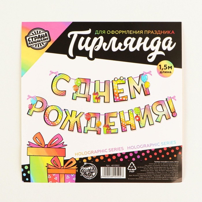 Гирлянда голография на ленте «С Днем Рождения», шарики, длина 150 см